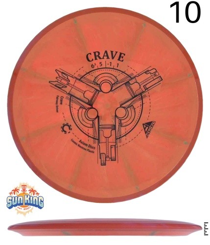 The Crave provides controllable straight flights with a great feel and loads of dual-color style. Relative to MVP drivers, the Crave is like a seasoned Servo. The popular "worn workhorse-stable" vibe is achieved with subtle wing contours that also feel great in the hand. The stability, range of weights, and easy throw make the Crave a GYRO™ rig staple.