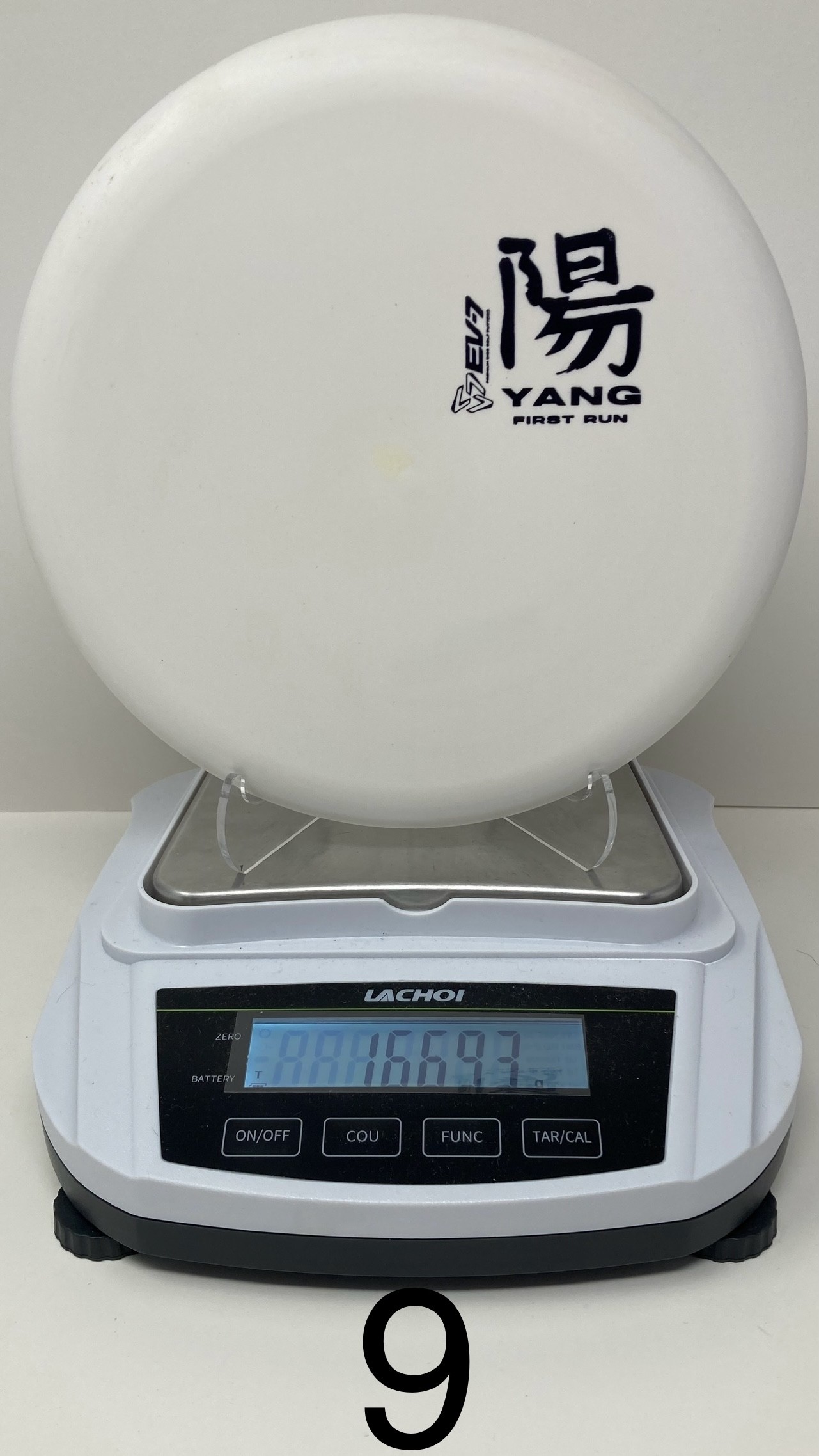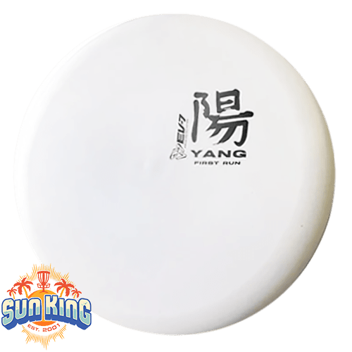 The Yang is a ground play disc, it's slow, slightly overstable, shallow, and has a big bead. It's made to skip on hyzer approaches, and gently slide on straight shots in to the green. It will flatten and fade of anhyzer shots for a softer landing. Due to it's lack of glide, The Yang won't blow past the basket - it's perfect for shots 250' and in.