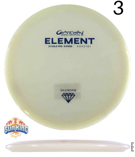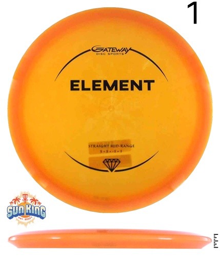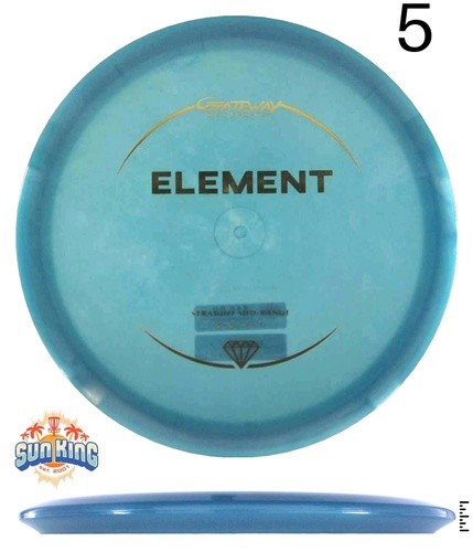 The Gateway Element is a fantastic all-around midrange disc. This disc will hold any angle you throw with unbelievable glide. If you throw it flat it will go extremely straight will very little fade at the end of its flight. Anhyzers will keep turning, and hard-thrown hyzers will flip up to flat.