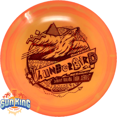 Big Jerm went radically retro with the Thunderbird this year. The Koling Thunderbird is just stiff enough for all the flicks while being soft enough to give you all the feel in the flight plate one would need to smash a backhand. As the Koling Thunderbird is known for, these have a bit more stability than your standard Thunderbird. The Thunderbird is predictable in wind and a great long range placement driver. Pros will appreciate the shot shaping ability of this driver while less experienced players will find a consistent, predictable flight. A substantial portion of each sale will benefit Jeremy Koling and his touring efforts.