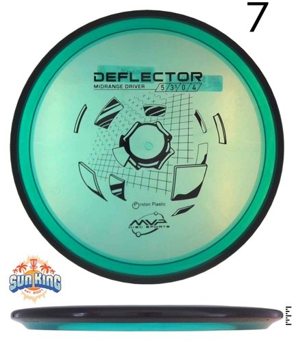 The Deflector is defined by overstability. High power forehand and backhand players will find a midrange that they can unleash on and have the confidence of a predictable finishing fade. The Deflector is here to combat headwinds and produce powerful overstable flights in all conditions. Deflector answers the call of many fans looking for a slower speed disc with powerful overstability. On an anhyzer release the Deflector will fight out of its turn and flatten out to fade. On a hyzer line the disc will follow a smooth fade with a pronounced stable finish.