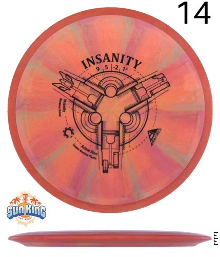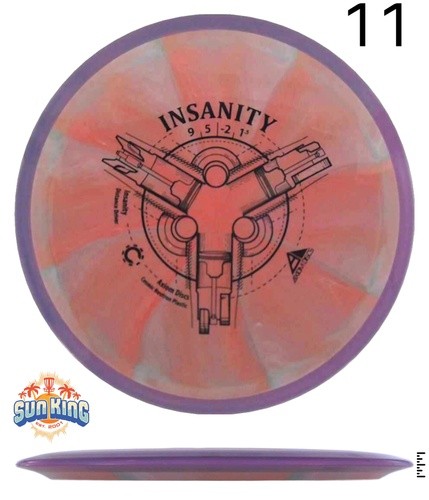 The Insanity is a stable-understable distance driver. The Insanity is best described as a worn-in MVP Inertia, with slightly more high speed turn and a diminished fade.