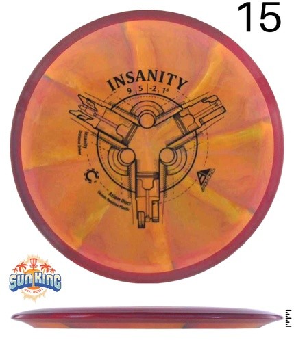 The Insanity is best described as a worn-in MVP Inertia, with slightly more high speed turn and a diminished fade. For average power throwers the Insanity will be remarkably straight, while high power throwers can execute precise flip and turnover lines with ease. Whether you're looking for that sweet-spot worn disc flight, or you're looking to achieve bigger Inertia lines with less power, give Insanity a shot.