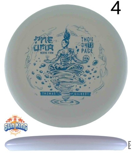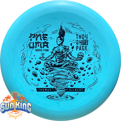 The Pneuma is our new beaded putter crafted through a collaborative effort between Thought Space Athletics and Thomas Gilbert. With flight numbers 2-3-0-0, the Pneuma boasts exceptional control and accuracy, making it the ideal choice for beginners and seasoned players. Its sleek design and comfortable grip ensure a smooth release, allowing for precise throws that effortlessly navigate the course. Prepare to elevate your game with the Pneuma!