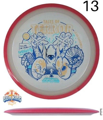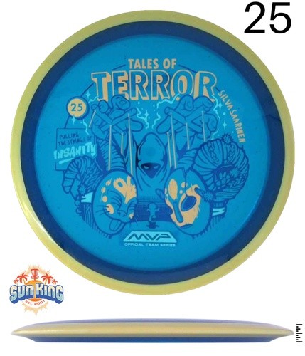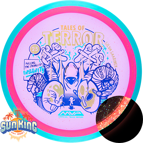 Beware the one pulling the strings during the Finnish Harvest Festival! Stamp newcomer Damian White unveils his first MVP stamp for this Halloween comic inspired design on the Particle Proton Insanity, a warning that some ornaments created for this event are a bit more ghoulish than they appear. The Insanity is a stable-understable driver that players will find easy to manipulate, with average power throws being remarkably straight with forward pushing fade, and higher power throws resulting in precise hyzer-flips, turnovers, and beautiful s-lines. Don’t let the course pull your strings - grab a Particle Proton Insanity today and prove who the true master is.