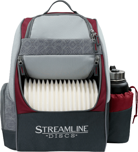 For a compact and affordable backpack bag check out the new Streamline Shuttle Bag. The Streamline Shuttle Bag is available in one timeless colorway – Burgundy/Black. The main compartment is designed to hold 18-20 discs, the side pocket is capable of holding up to 2 discs, and the top pocket is able to hold 2 discs and your accessories, or up to 6 additional discs.