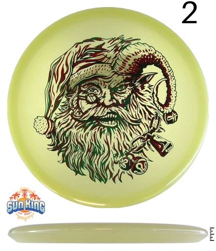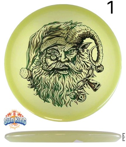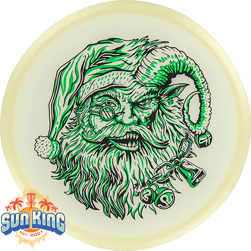 Our special holiday Krampus Claus design on the Innova Proto Glow Champion Mako3 is probably a lot like your disc golf game: part sweet and part, well, not so sweet. But one thing’s for sure, you’ll have a whole lot of fun throwing this disc.