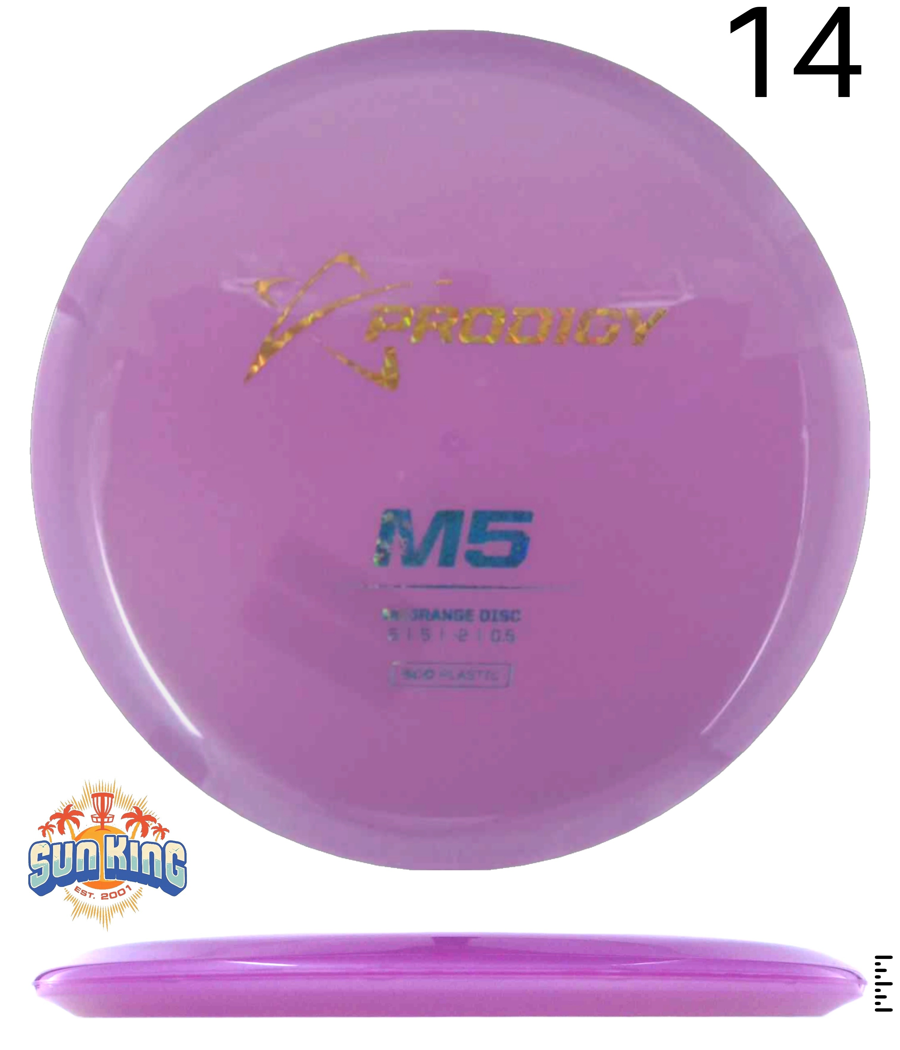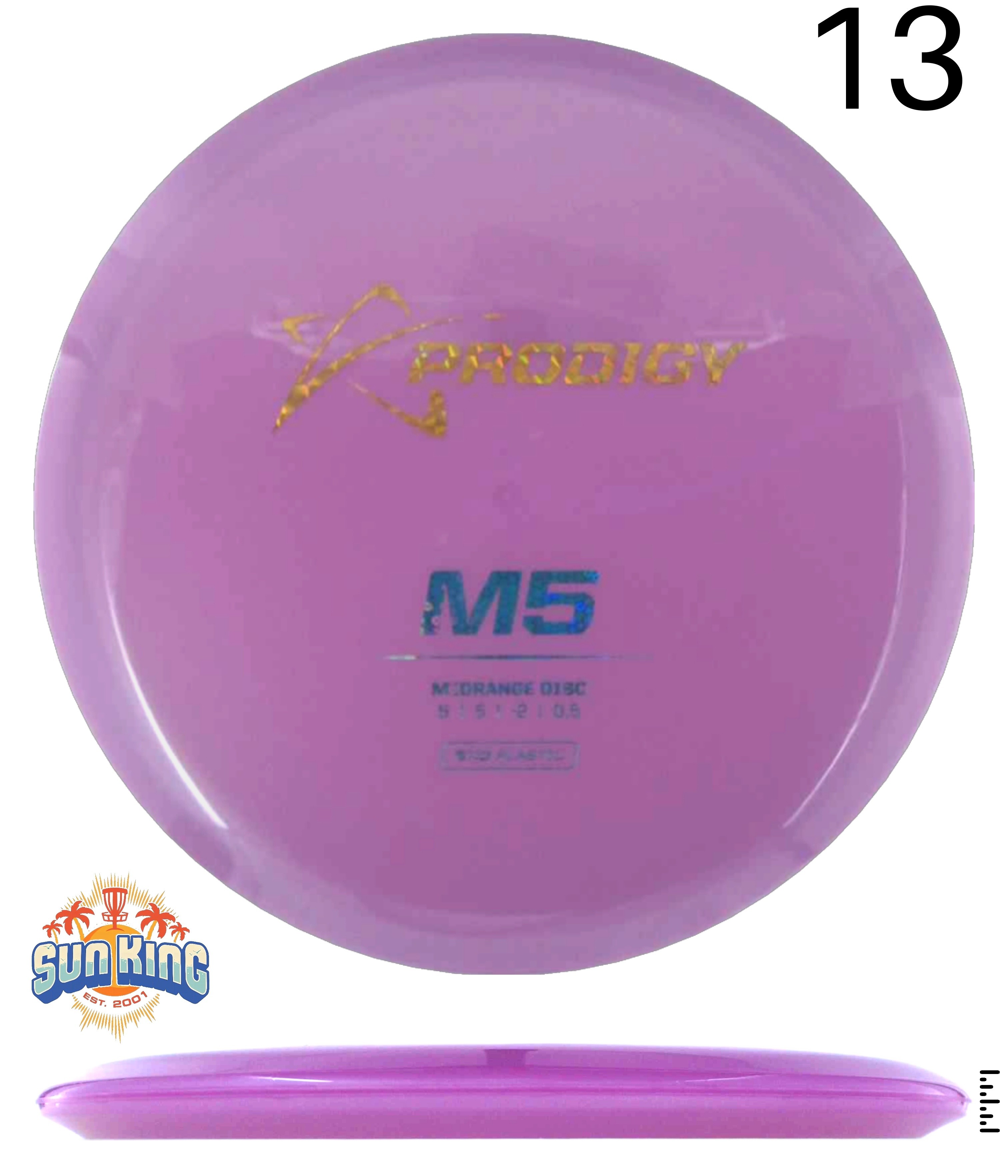 The Prodigy Disc M5 is an understable midrange replacing the original version created in 2014. It's perfect for any player, adding a whole new dimension of shot shapes to our M-Series with its understable yet controllable flights and impressive glide.